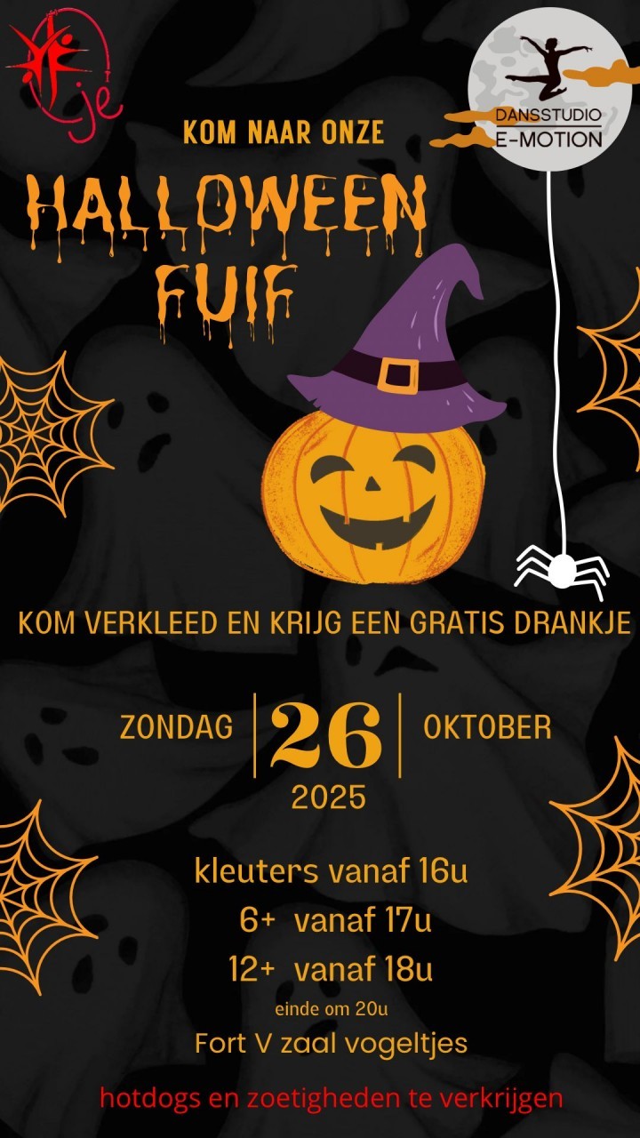 Kom verkleed en vier een griezelige Halloween met ons! We hebben een spannende fuif in petto, vol met plezier en lekkernijen!